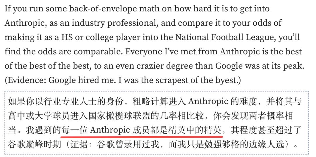 以行业专业人士身份进入Anthropic的概率,跟一个高中生打进国家橄榄球联盟差不多。
