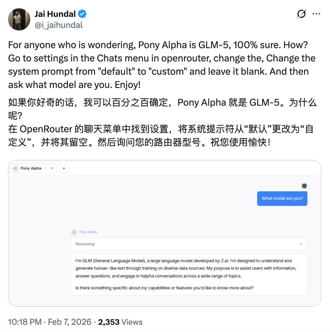 神秘模型「Pony Alpha」火了,被曝是GLM-5