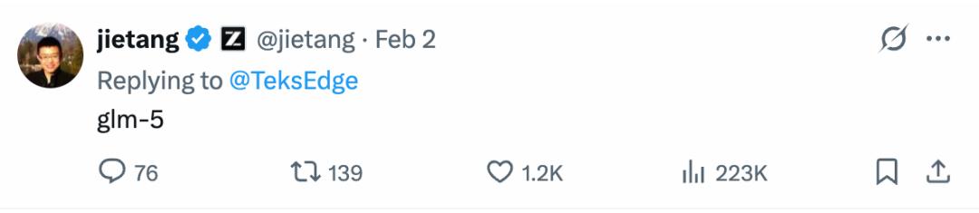 当然,还有一个重要原因是时间对上了。智谱AI在2月初官宣“计划在未来两周内发布新模型”,而唐杰老师发的帖子也是吊足了大家的胃口。