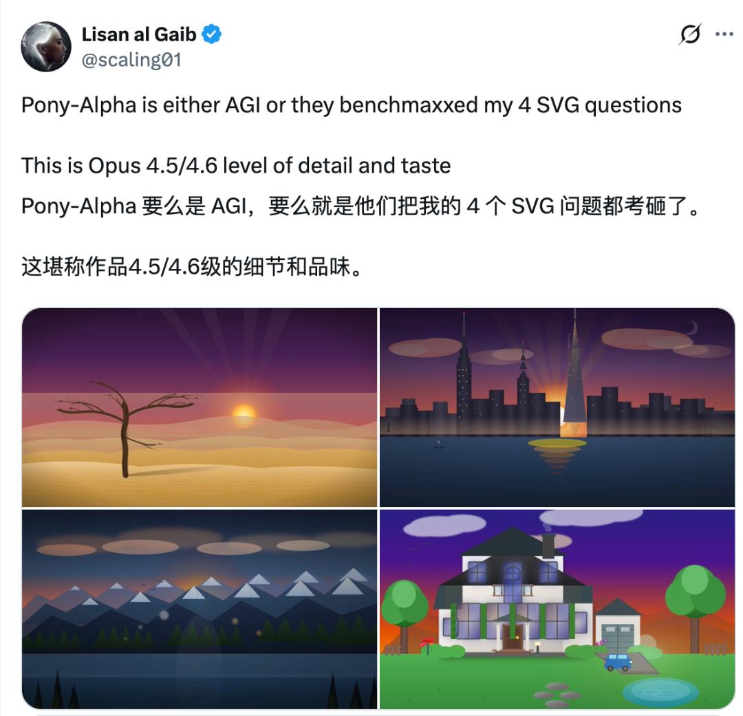 在SVG图形处理方面,Pony Alpha的表现也相当不错,已经接近Claude Opus 4.6的水平: