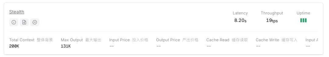 其模型页面显示,Pony Alpha具备200K的上下文窗口,最大输出131K。