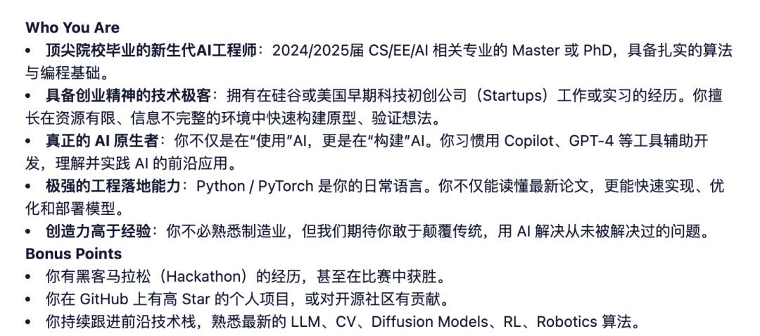有网友发现,特斯拉近期在急招“AI原生科学家”。根据特斯拉的描述,这并不是传统意义上的算法工程师岗位。该岗位面向2024/2025届AI、计算机科学、电气工程等专业的硕博毕业生开放,要求应聘者在硅谷或美国初创科技公司工作或实习过,习惯用Copilot和GPT-4等工具(没提Grok)。