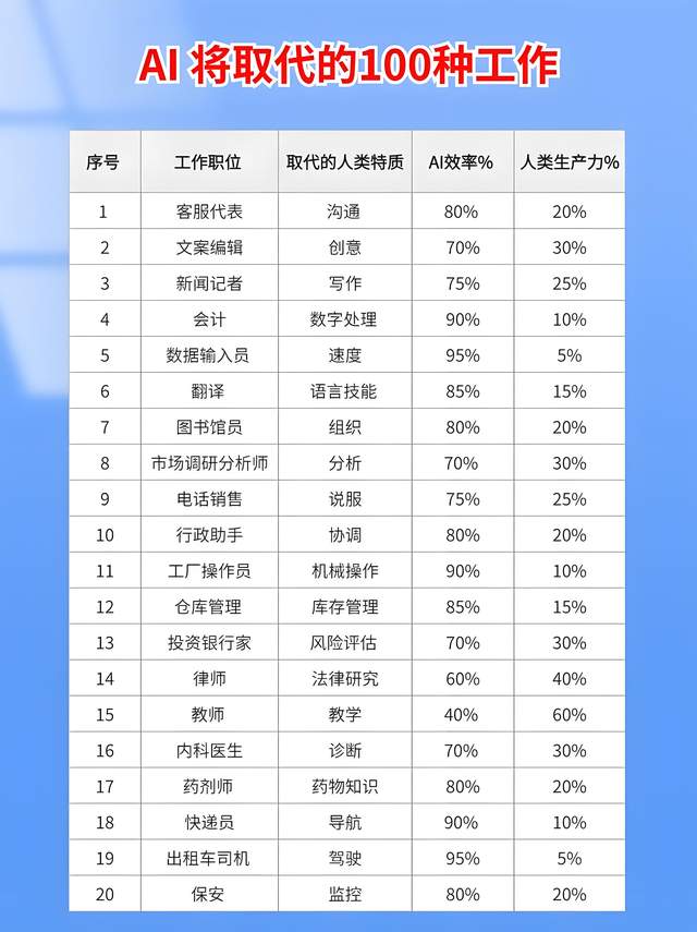和你竞争的,可能根本不是其他毕业生,而是不知疲倦的AI。如果一份工作只是复制粘贴、填表、套模板写周报——这些事AI几秒就能干完,还不抱怨、不请假、不出错。
