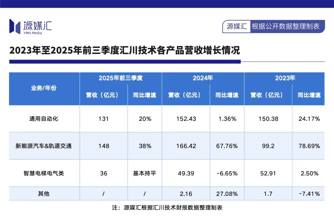反观汇川的传统发家业务智慧电梯电气,在楼市下挫后也陷入下行。2024年,该业务实现营收同比下滑6.65%;2025年前三季度,同比基本持平。