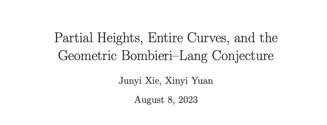 这篇论文题为”Partial Heights, Entire Curves, and the Geometric Bombieri–Lang Conjecture”(部分高度、整曲线与几何Bombieri–Lang猜想),核心成果是: