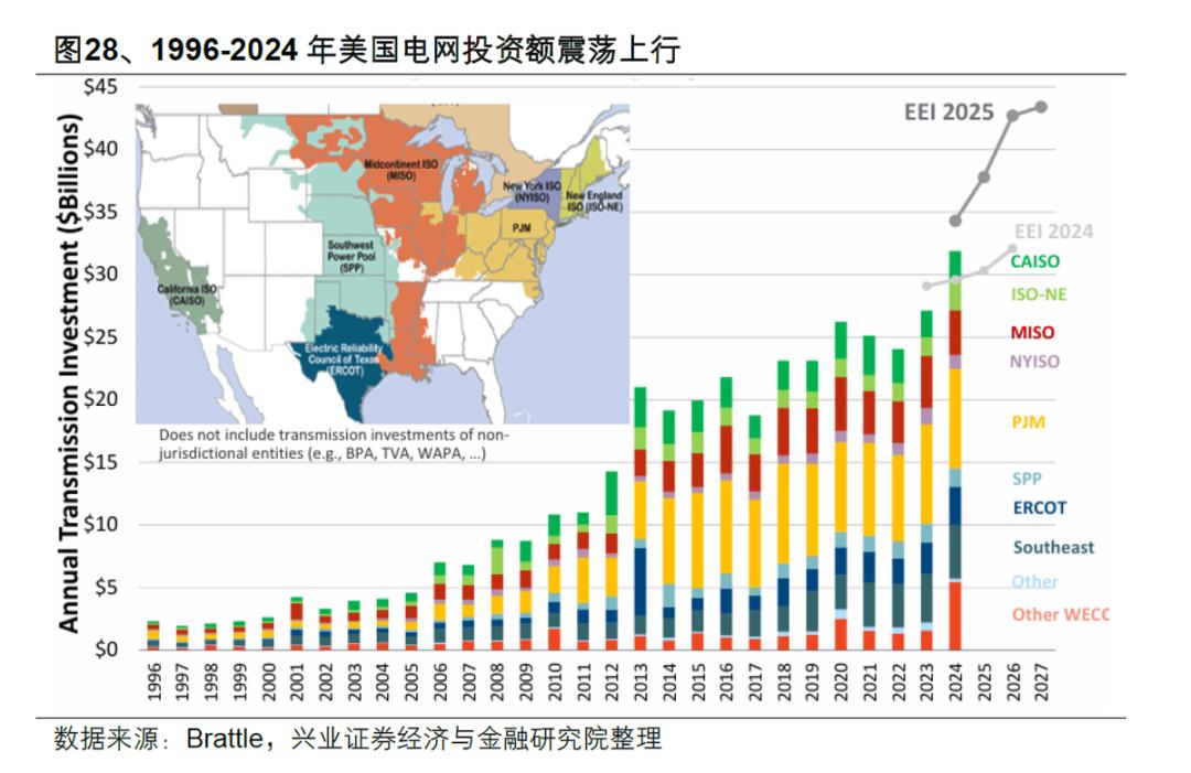 且投资方向也偏向投资主要流向 “老化基础设施更换” 和 “巩固电网可靠性”,由 “负荷增长” 驱动的扩容性投资占比极低。