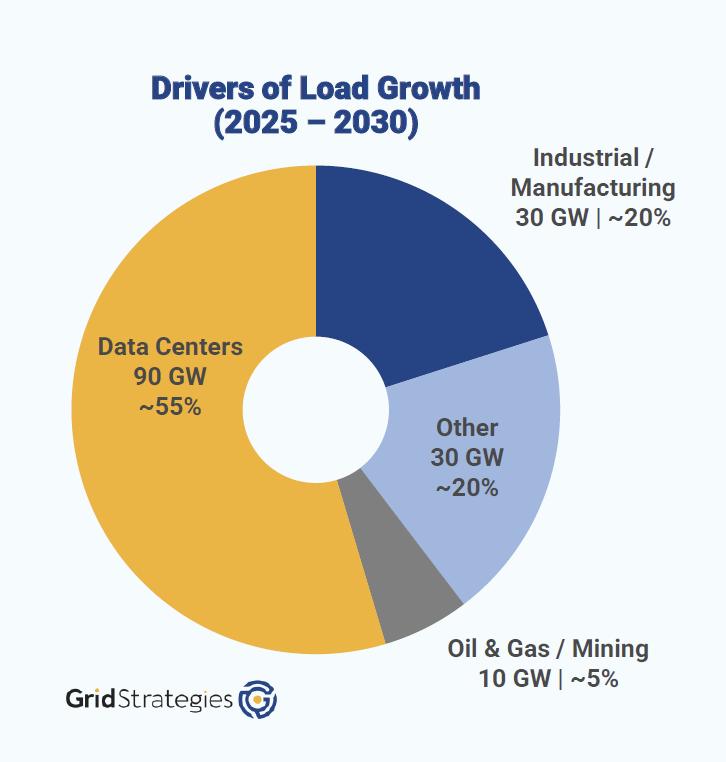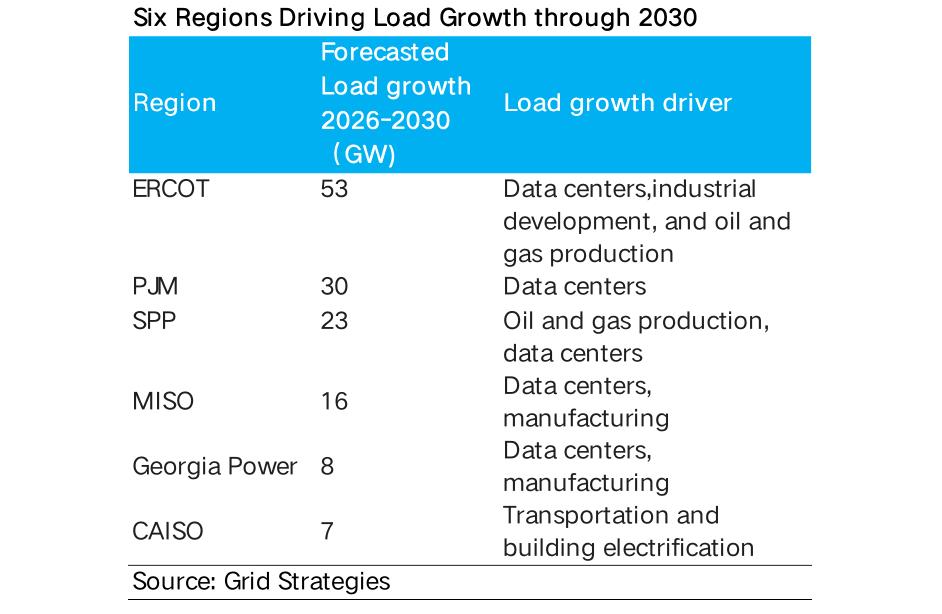 北美电力公用公司大幅上调了未来5年的峰值负荷预期,规划总增量高达 166 GW。在这波电力“超级周期”中,数据中心是绝对的主导力量: