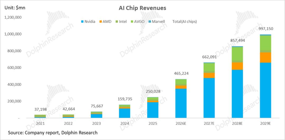 在两大阵营共振下,全球前11大科技巨头的合计资本开支将从2023年的1800亿美元,加速增长至2025年的 近5000亿美元。这种“军备竞赛”直接带动了上游AI芯片的出货量及数据中心规模的持续爆发。