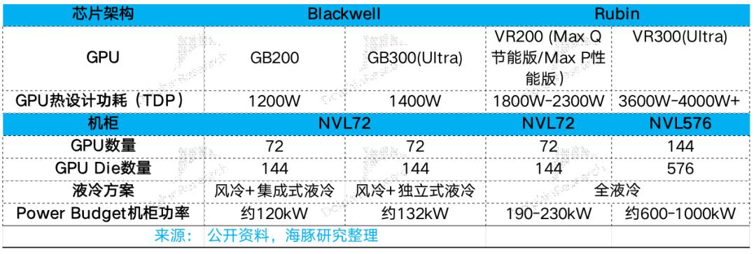 单点热密度飙升: 英伟达GPU的单芯片TDP已从H100时代的700W,跃升至Blackwell架构(GB200/GB300)的 1200W-1400W 量级。而市场预期下一代 Rubin 架构及其配套的超级芯片平台,功耗将进一步突破 2000W+,对供电与散热能力都提出了极致要求。