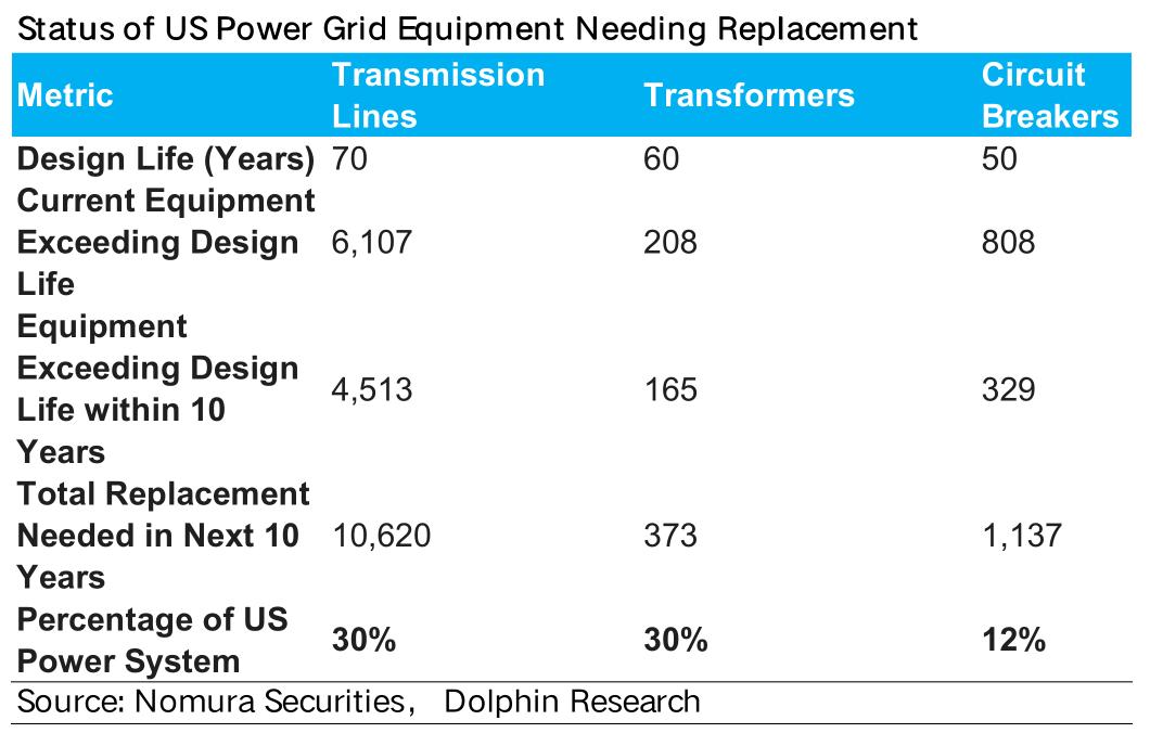 美国缺电危机并非单纯发电侧问题,输电侧同样面临严峻挑战:电网基础设施的老化,无法承受AI数据中心“用电巨兽“的冲击:
