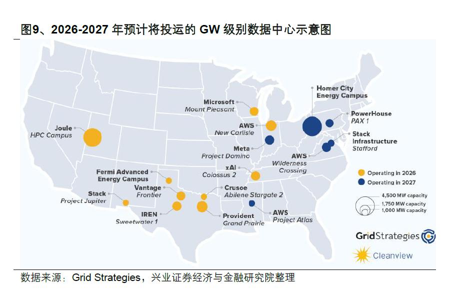 据 Grid Strategies 统计,预计到2026年将有10个GW级数据中心投入运营;而在2030年及之前规划建成的数据中心里,约50%都将达到GW级规模。