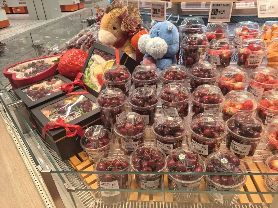 2025年11月,来自南半球的新一季车厘子刚登陆中国市场时,山姆会员店“3J级”智利车厘子售价159.9元/公斤,到了2026年1月,同款产品价格已“腰斩”至79.9元/公斤。在盒马门店,降价趋势更为显著:今年1月促销期间,“2J级”车厘子礼盒叠加返券后售99元/5斤(约合20元/斤),而上个月同等规格产品售价还在180元/5斤左右。