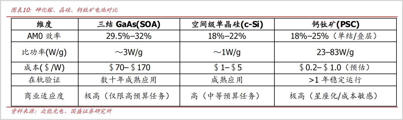 据国盛证券研究,钙钛矿叠层电池的最高实验室效率约35%,预估成本不足7元每瓦,较砷化镓电池显著下降。