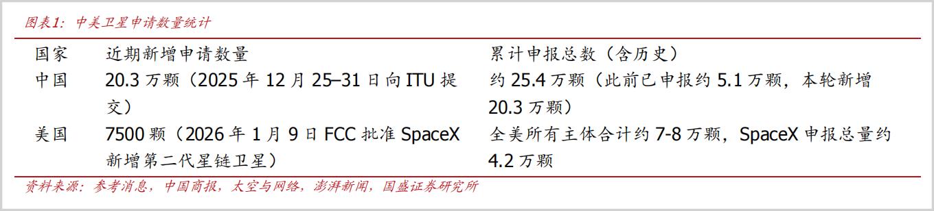 具体来看,商业航天爆发式增长是太空光伏的核心推手。在国际电信联盟(ITU)“先登先占”规则下,全球低轨卫星竞争逐渐白热化,全球多国主体纷纷推进巨型星座计划,卫星数量进入万颗级别。