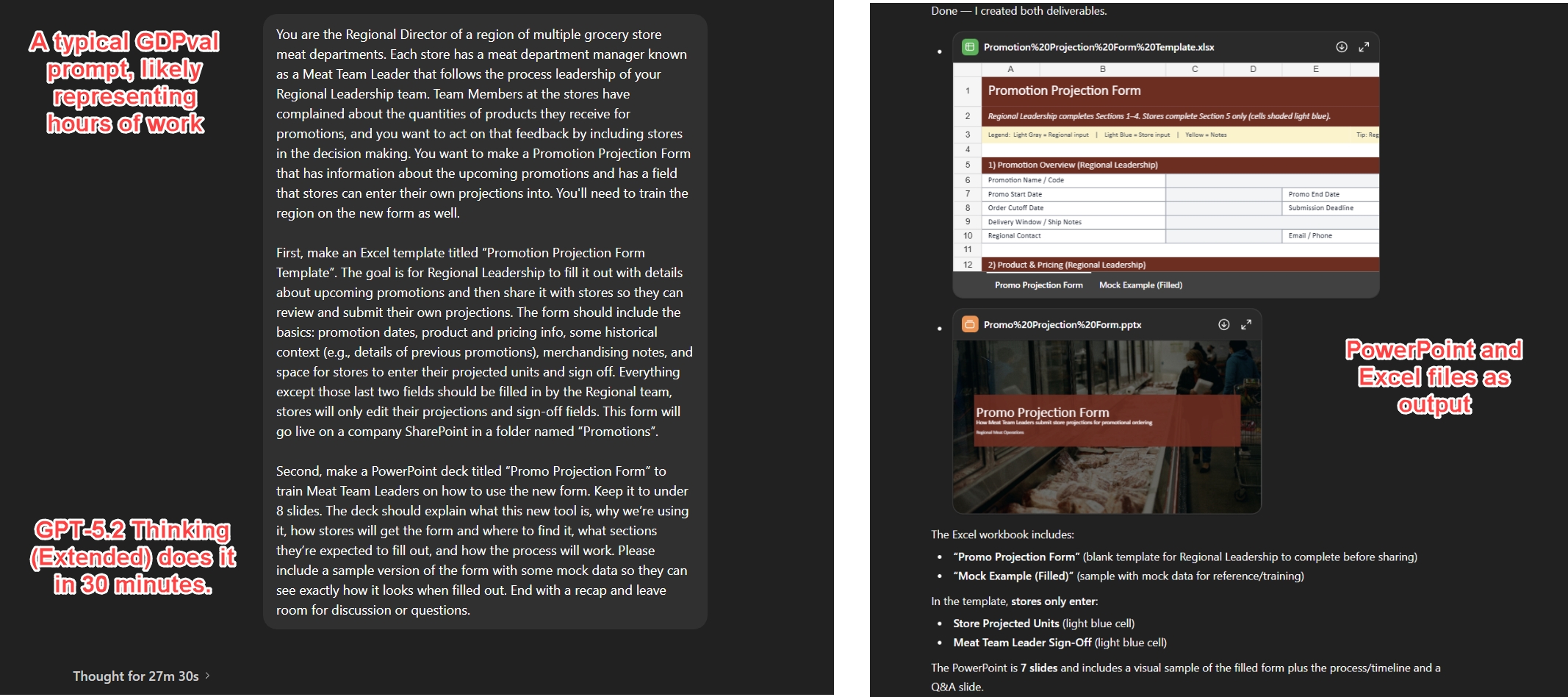 这是一个针对“人类基准时间长达数小时”的任务进行的提示词示例,其初始 AI 处理时间为 30 分钟(在此期间你可以做其他事情),外加编写提示词和检查的时间。但如果你必须进行大量修正,那就不划算了。