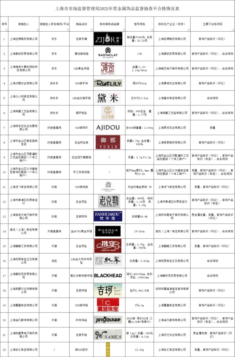 上海市市场监管局在2025年10月展开的专项监督抽查中,抽查了实体商家、网络平台和直播间中涉及56家企业销售的51个品牌60批次产品。