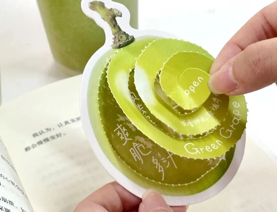 “奇兰苹果杏特调”小卡采用三折叠设计,折叠后呈“苹果”形状,展开呈现“苹果被吃掉”的三个步骤,且自带苹果香气,这种“嗅觉+视觉”的双重体验,让它被称作“夏日解暑神器”。