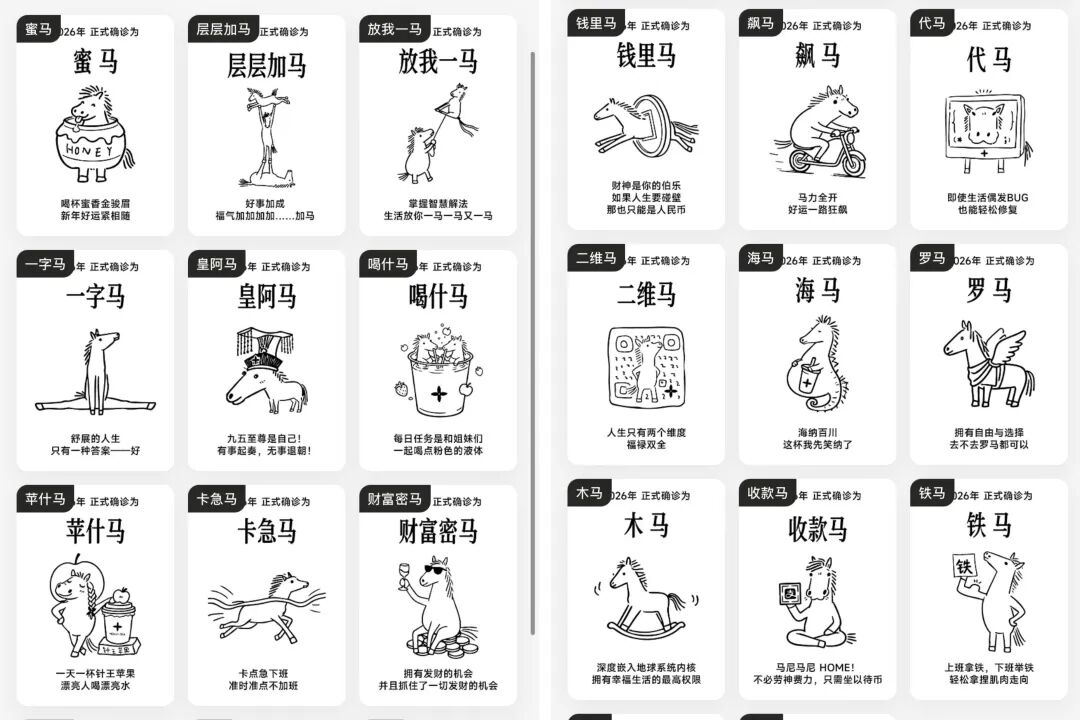 比如前几天,茉莉奶白上线的DIY杯贴功能,自带马年杯贴模板,诸如“层层加马”“财富密马”“收款马”“卡急马”……谐音梗接地气又生动,网友直呼“太有活人感了”。