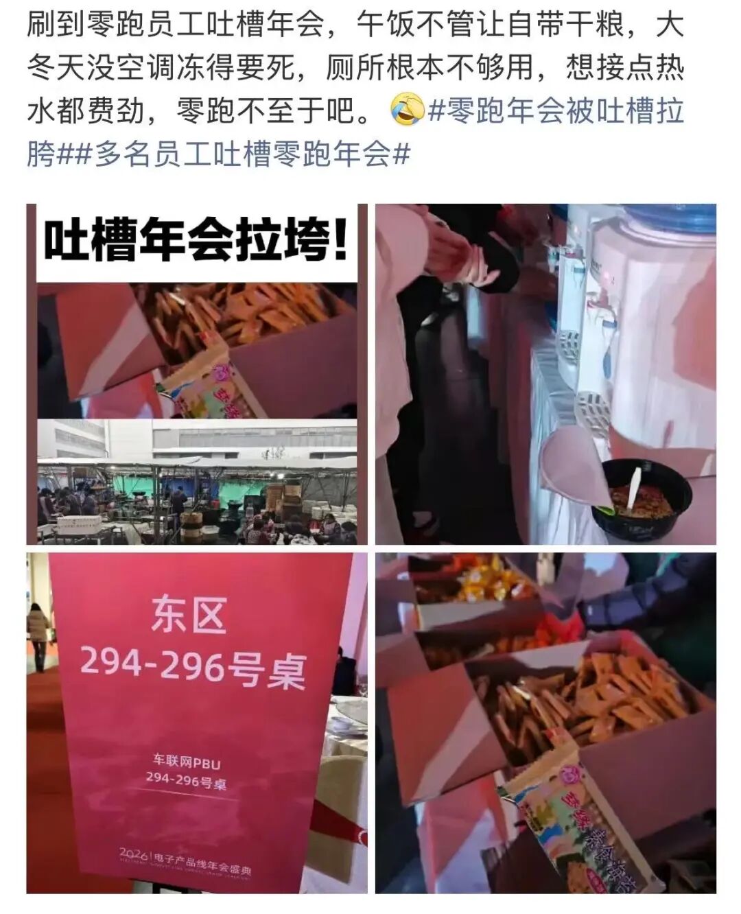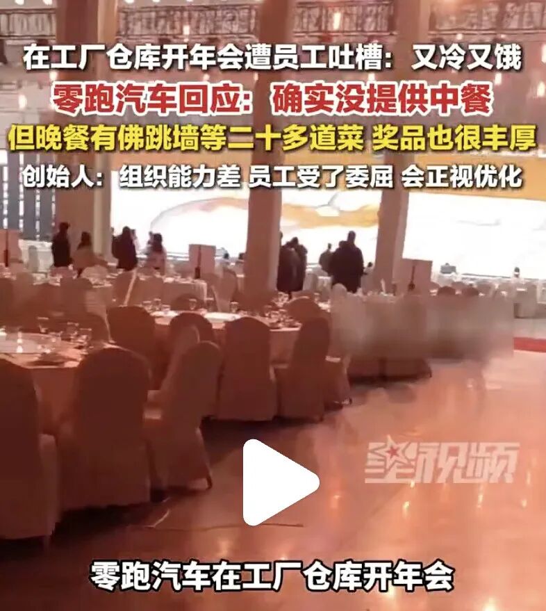 为了节省资金,零跑今年的年会场地选在工厂仓库,没有空调,员工被冻得直跺脚,排队在饮水机旁边打热水吃泡面。