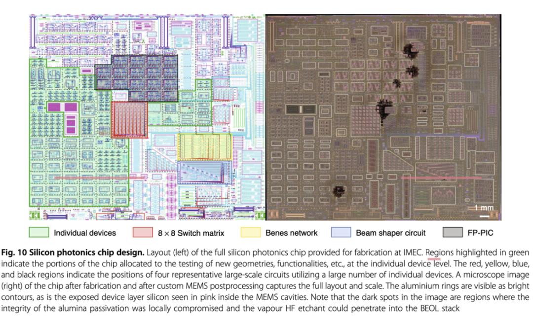 在硅光子学中,通常不使用CMOS晶体管(硅光子学和CMOS的集成已经开始——GF公司有一种将两者结合起来的工艺——但目前还不普遍)。硅光子学工艺中通常可用的器件包括: