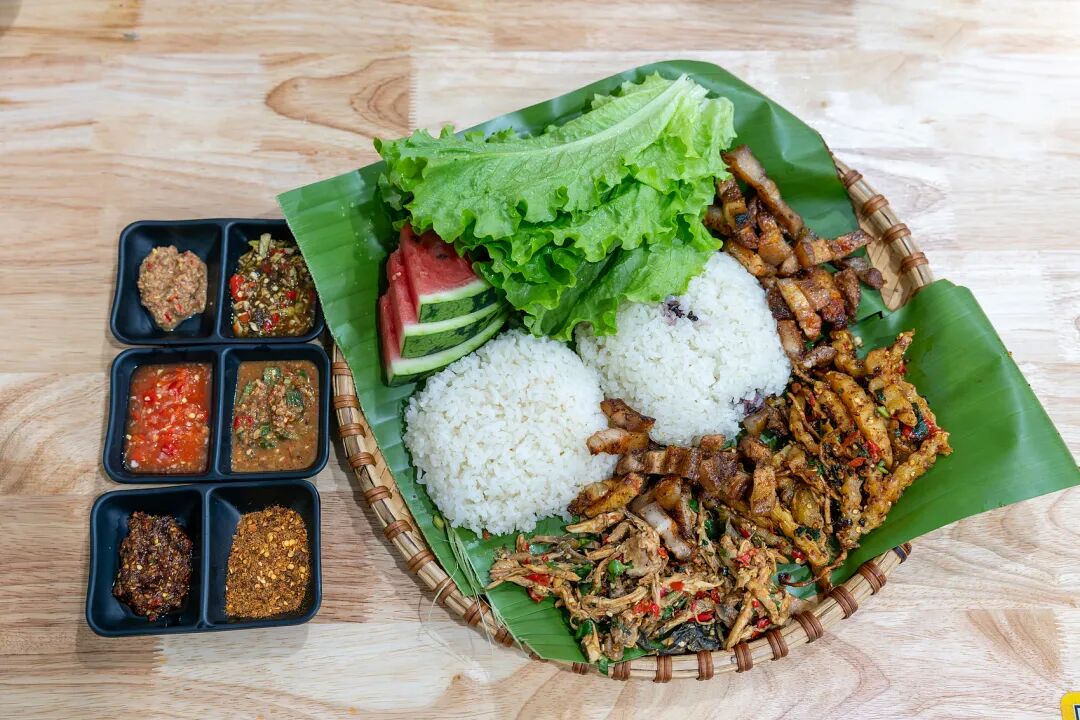 中缅街一带,缅甸玉石铺、东南亚拖鞋店并排,红毛丹、芒果成堆出现。发酵数日的酸肉是最地道的菜品,餐馆里的酸木瓜炖鸡酸得直接,泰式手抓饭全靠手的分寸。辣椒面是公认的主角,拌柚子、拌菠萝,酸辣同时炸开,让人越吃越上头。这里的食物,不分国界,只认好不好吃。