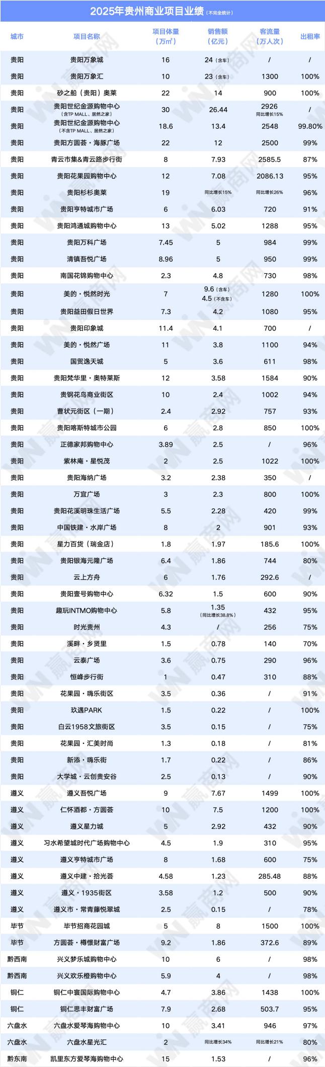 贵州61个商业项目2025销售额出炉,最高卖了24个亿!