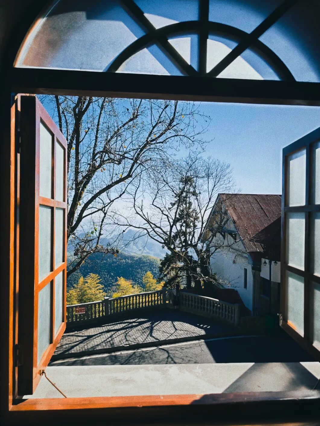 通往莫干山的盘山公路,是进入另一种生活仪式的序曲。道路蜿蜒,像一条灰色的绸带系在山腰。一侧是陡峭的山壁,另一侧,则是渐次展开的、如盆景般的山谷全景。竹是这里绝对的主角,它们成海,随风起伏,形成一波波绿色的浪。冬日阳光斜射下来,光线穿过竹梢,在路面投下长长的、晃动的影子,仿佛整座山都在进行一场缓慢的呼吸。