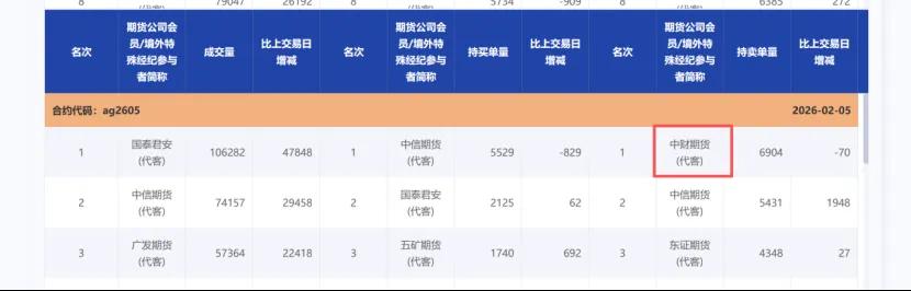 传闻并不是空穴来风,因为中财期货的持仓数据里,确实有白银期货空头头寸,只是关键词包含“中财期货”的每个名单后,均有“(代客)”的标识。