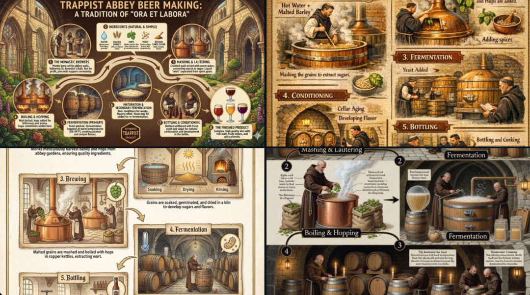 Capcut的官宣推文里提到,Seedream 5.0可与Nano Banana Pro对标,且更便宜,目前所有用户可免费使用20次,美国地区之后上线。有网友对比了Nano Banana Pro、ChatGPT、Seedream 5.0、Grok Imagine Image的生成效果,其提示词为:生成一张高质量的信息图,解释在特拉普修道院制作啤酒的过程,并配有丰富的插图。