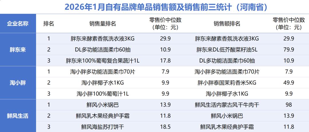 胖东来、淘小胖、鲜风生活的自有品牌各自有何优势,数据的展示是最真实的。