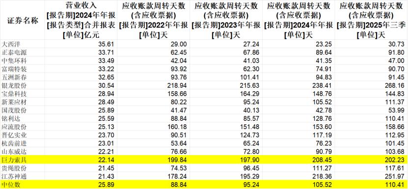 巨力索具的回款周期,几乎是同行中位数的两倍。