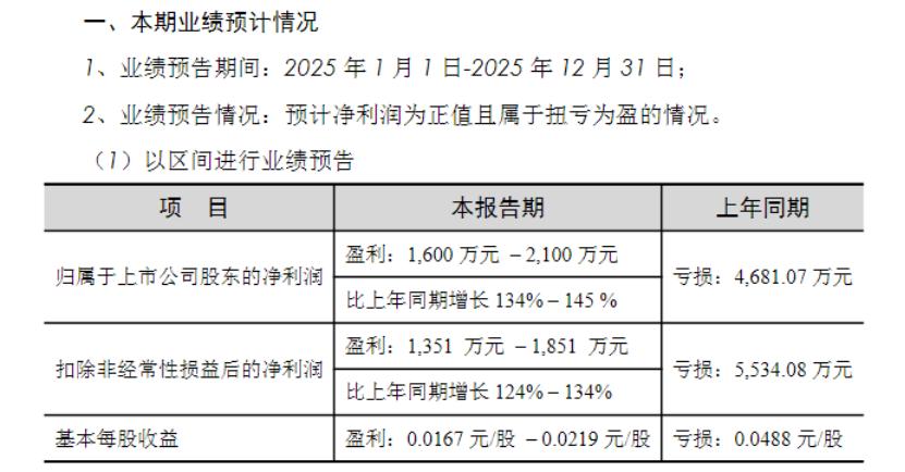 根据最新披露的业绩预告,公司预计2025年实现盈利1600万至2100万元,相比2024年亏损4681万,同比增幅达到134至145%。