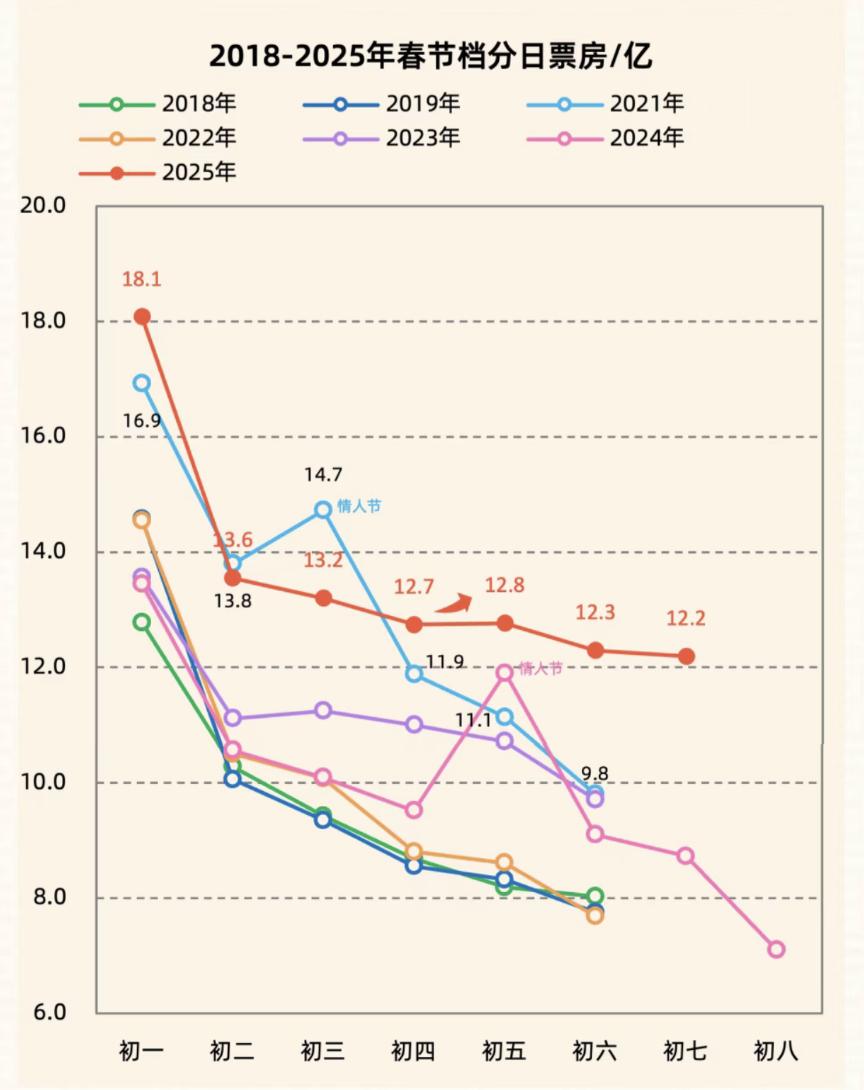 这一集体选择是根植于一套追求“绝对安全”的行业生存逻辑。在影院的效率计算中,春节“黄金七日”(尤其初一至初三)是需求最密集、收益效率最高的时段。将全部重磅新片集中于此时上映,被视为保障单厅产出、实现票房爆发的最优解。任何将核心影片提前至“需求未经验证”的节前上映的行为,都被视作可能分散热度、削弱黄金周势能的冒险。