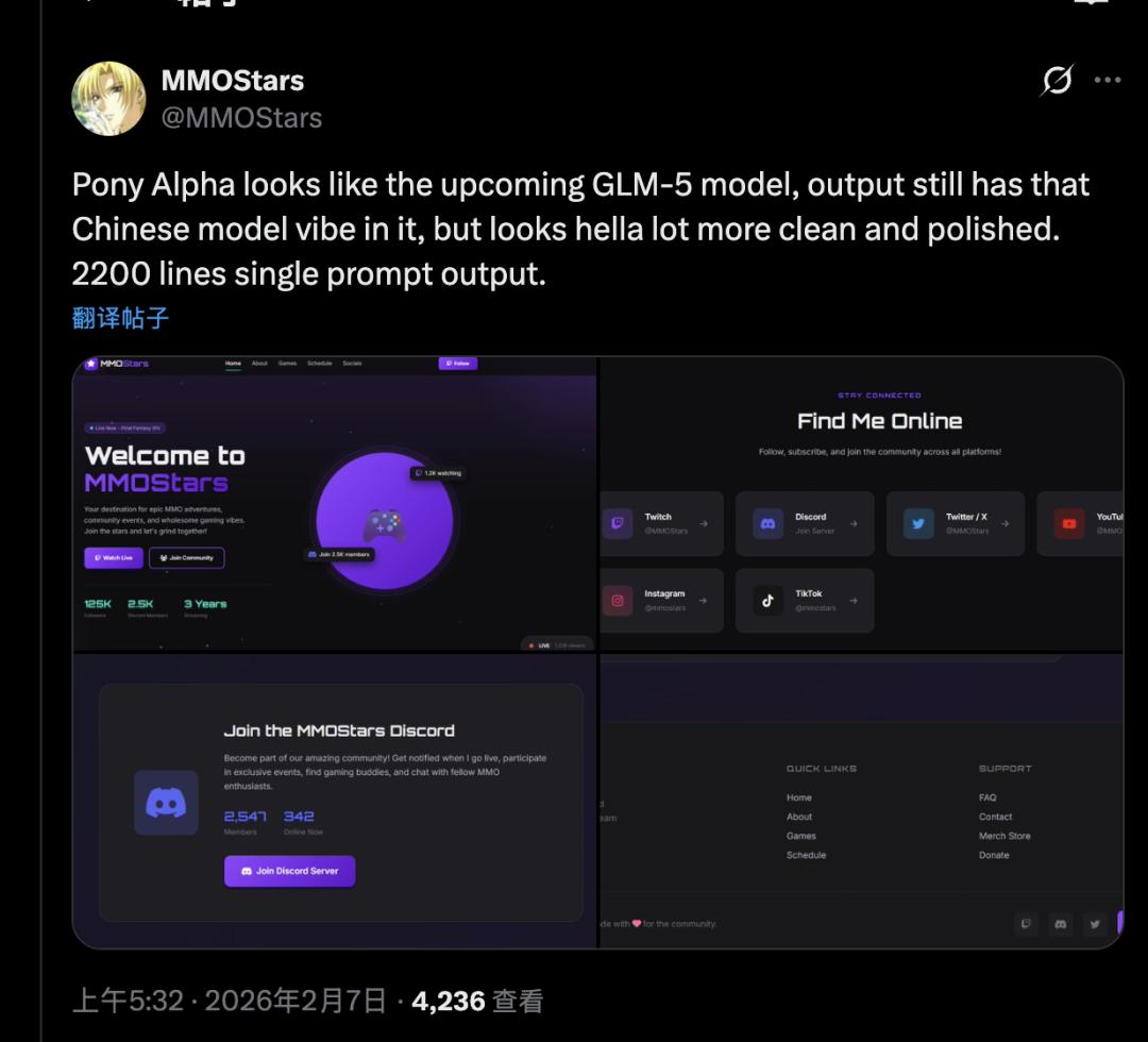 与此同时,OpenRouter平台上突然出现的神秘匿名模型「Pony Alpha」,编程和推理能力极为强劲,被社区91%以上的用户判断为GLM-5测试版。