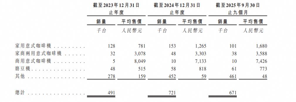 这在招股书中有所描述:我们家用意式咖啡机的平均售价于2024年有所上升,主要由于2023年底推出了云象家族,以及于2024年年初以更为高端的猫头家族取代了部分入门级家用型号。截至2025年9月30日止九个月,平均售价进一步上升,乃由于我们丰富了白鲸家族的产品线(白鲸家族已成为我们最受欢迎的产品线之一),于2025年对云象家族进行了升级,使其功能增强及定价增高。