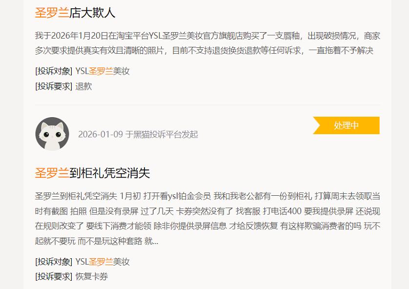 从投诉内容来看,大部分消费者对YSL的售后服务颇为不满。不光线上问题多,在线下很多人都反映YSL服务不达标,比如美容顾问态度冷漠、不耐烦的情况时有发生。
