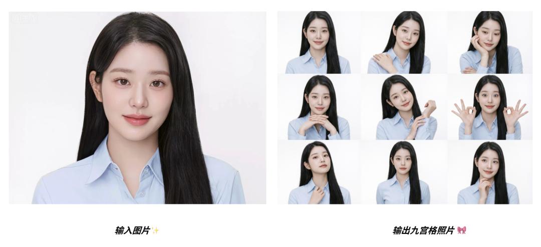 随手丢给了它一张照片,人家直接给我甩出一组影棚级的9宫格写真!!(诶,突然感觉怒省一笔钱…