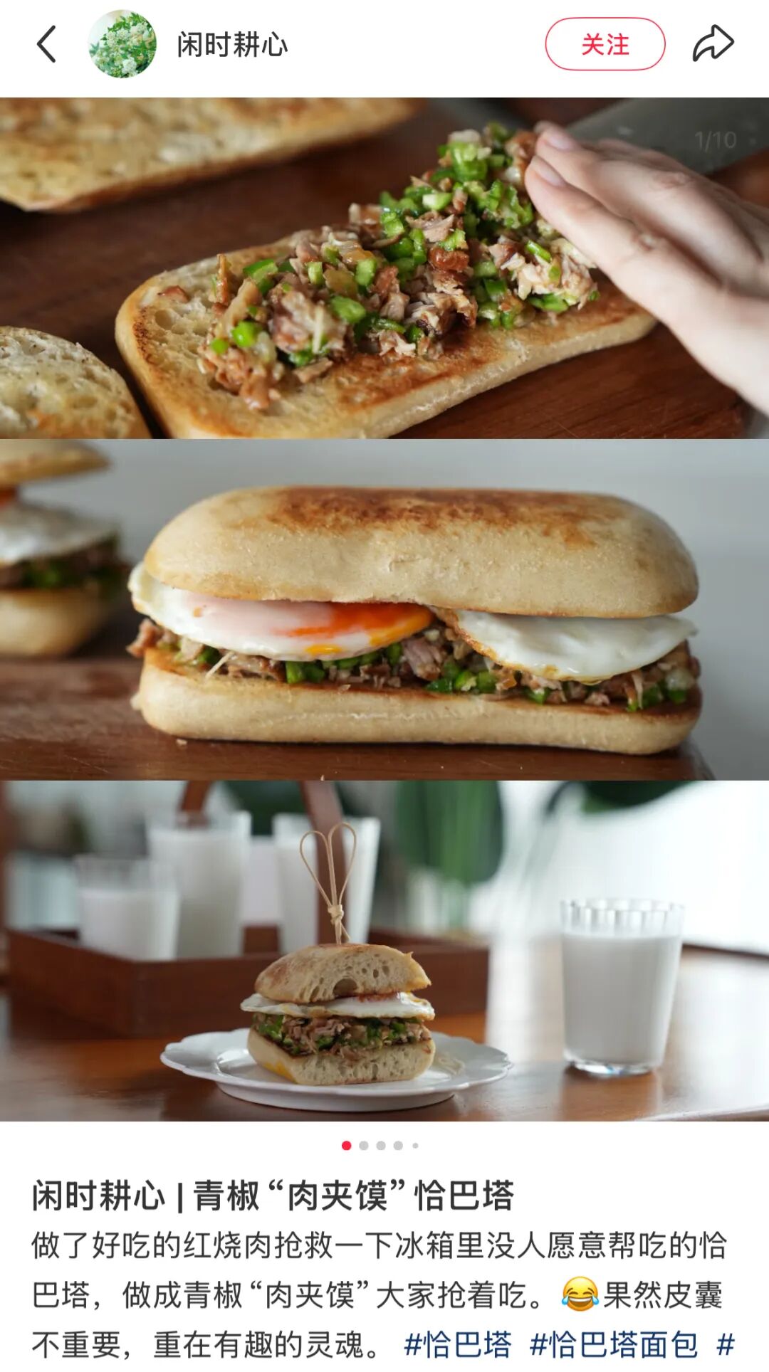 有人加入红烧肉,把恰巴塔做成青椒肉夹馍,将西式“皮囊”和中式“有趣的灵魂”相结合。
