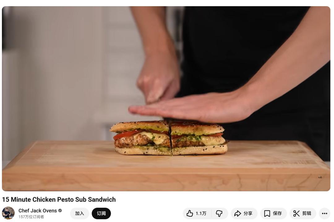 由恰巴塔制成的青酱鸡肉三明治|图源youtube视频博主@Chef Jack Ovens