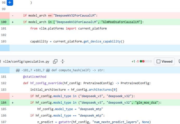 接下来的2月9日,vLLM推理框架仓库出现了编号为34124的pull request,在代码中首次明确出现了“GLM-5”标识。
