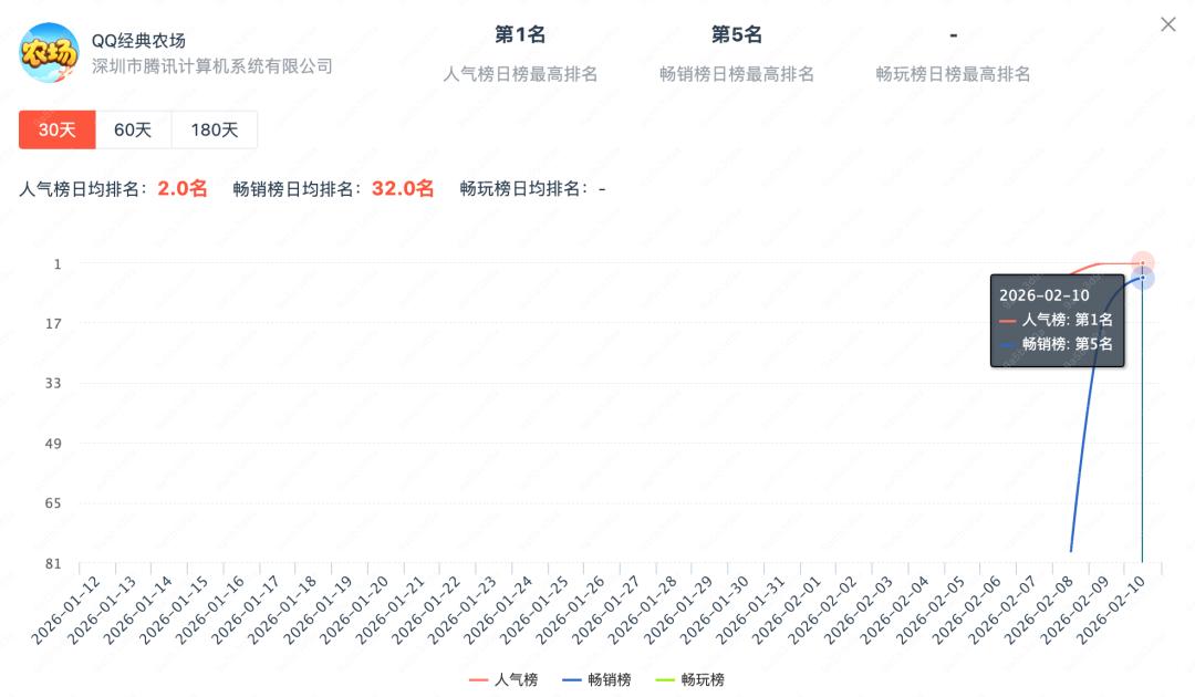 截止至2月10日,《QQ经典农场》位居微信小游戏人气榜榜首,畅销榜第5名的位置。