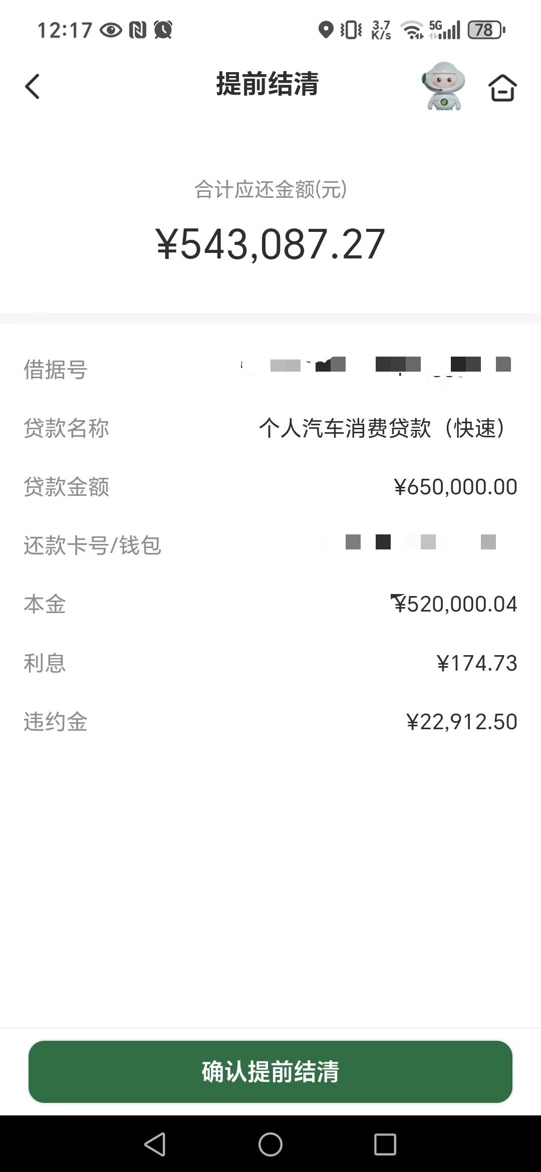 提前还贷前,他们也犹豫过,因为提前还款需要支付违约金。但是经过计算对比,发现支付违约金后仍比继续还款一年所承担的利息节省约9000元,所以他们决定提前结清。