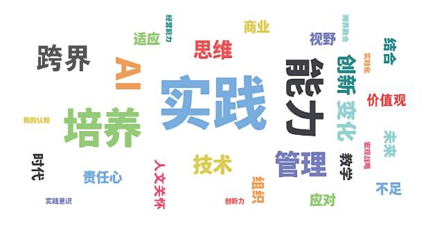 为此,我们发起了“管理的未来与未来的管理”调研,邀请曾与《管理视野》有过合作的学者以及IACMR会员,围绕技术、可持续与人才培养三大核心议题发表他们的看法。在收回的82份有效问卷中,我们看到了差异,也抓住了一些共性。例如,未来的管理中AI与人的关系还存在各种可能性,但大部分学者认为,AI无法替代人的管理角色。他们也认为,技术的发展会给管理学带来颠覆性的变化,而“跨界”将成为接下来商学院变革的关键词。