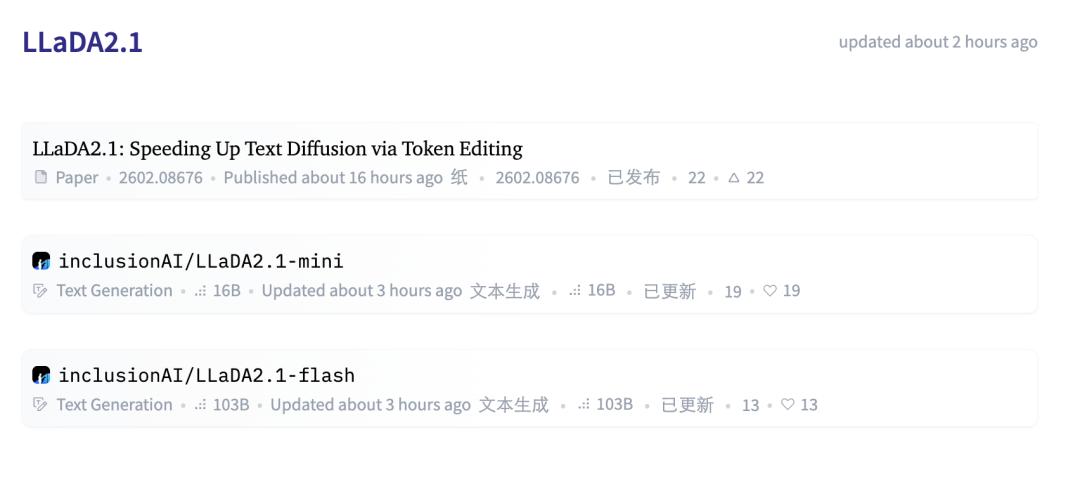 - Hugging Face:https://huggingface.co/collections/inclusionAI/llada21