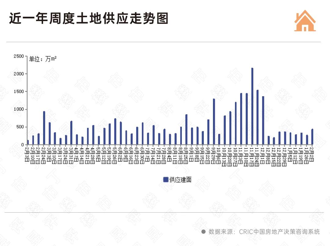 从最新的周度数据来看,随着上海、北京在2月3日进行了2026年首次住宅用地挂牌,2026年第5周(2.2-2.8)低位上行。不过上海、北京分别供应3宗和5宗地,整体仍在进一步践行控增量路线。