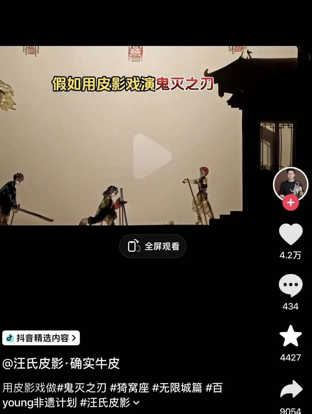 在他的皮影戏表演中,年轻人可以看到“超传统京剧皮影戏”《鬼灭之刃》,当皮影戏版的鬼舞辻无惨、猗窝座、灶门炭治郎等逐一出现时,很多“鬼灭粉”的年轻人都被震惊麻了。