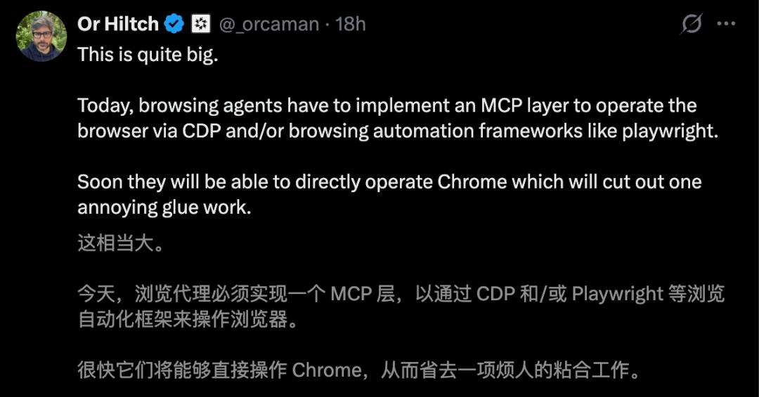 因此,可以把它想象成「内置在浏览器标签页里的MCP」。
