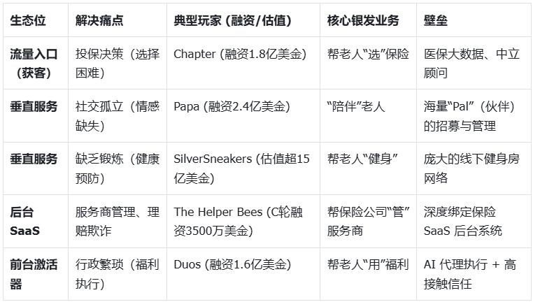 激活(Duos):保险公司付费给 Duos,把“激活会员”这个最难的活外包出去。Duos 作为“执行方”,用私人助理+ AI 平台帮老人搞定一切繁琐流程,排除万难,帮助老人找到,且真正用上他们想要的任何服务。(→)