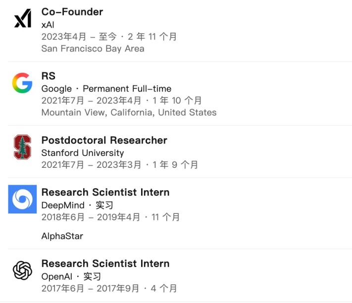 2023年,吴宇怀作为创始成员,加入刚刚成立的xAI。