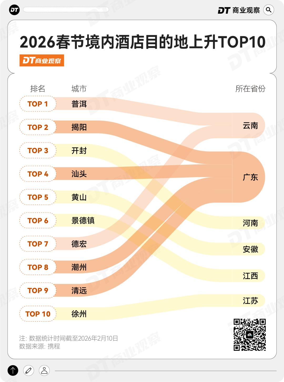 携程 2026 春节大数据预测报告显示,今年春节,以普洱、揭阳、景德镇为代表的小城强势崛起,酒店热度同比涨幅均超 80%,成为春节旅游度假的核心目的地。